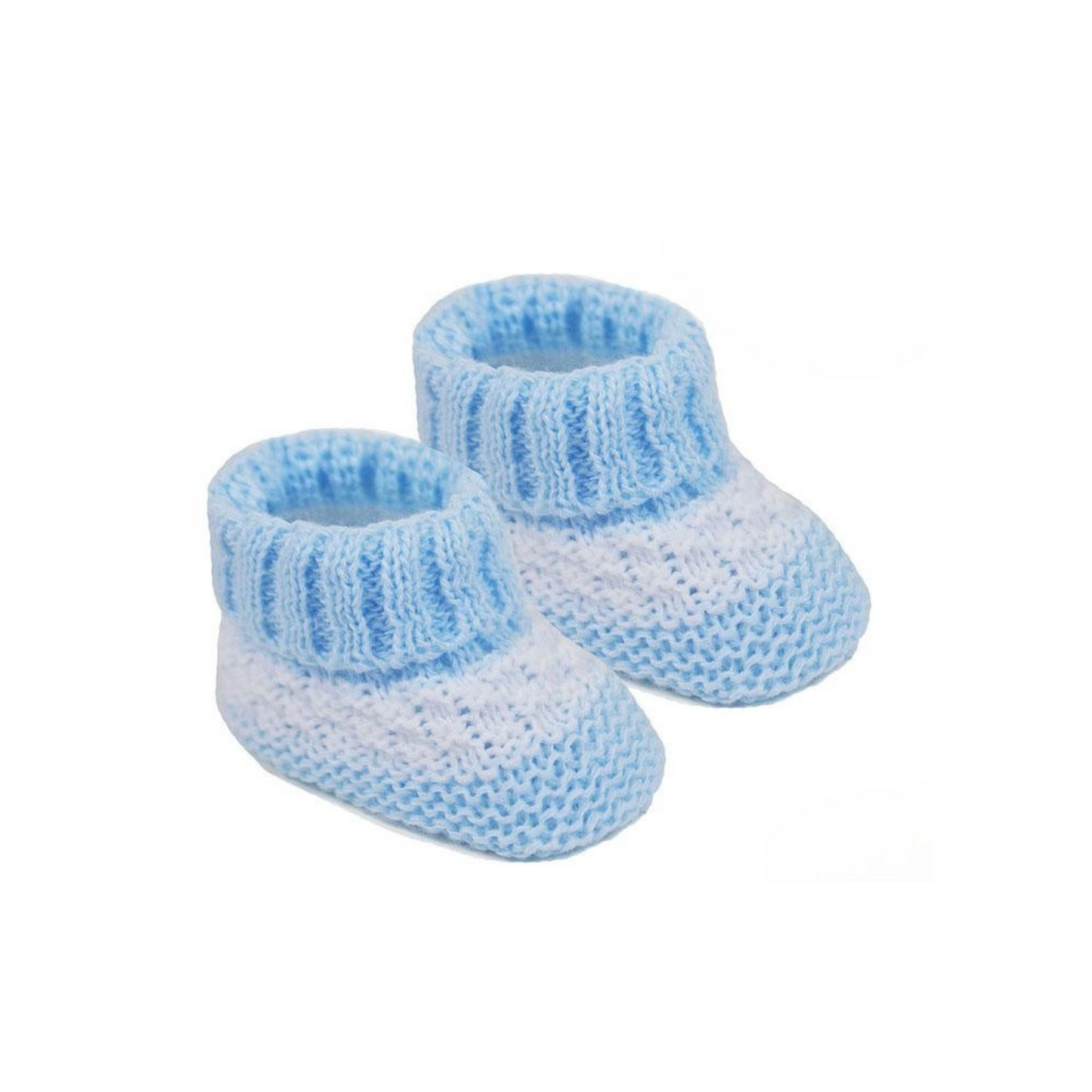 Super soft blue and white knit booties.