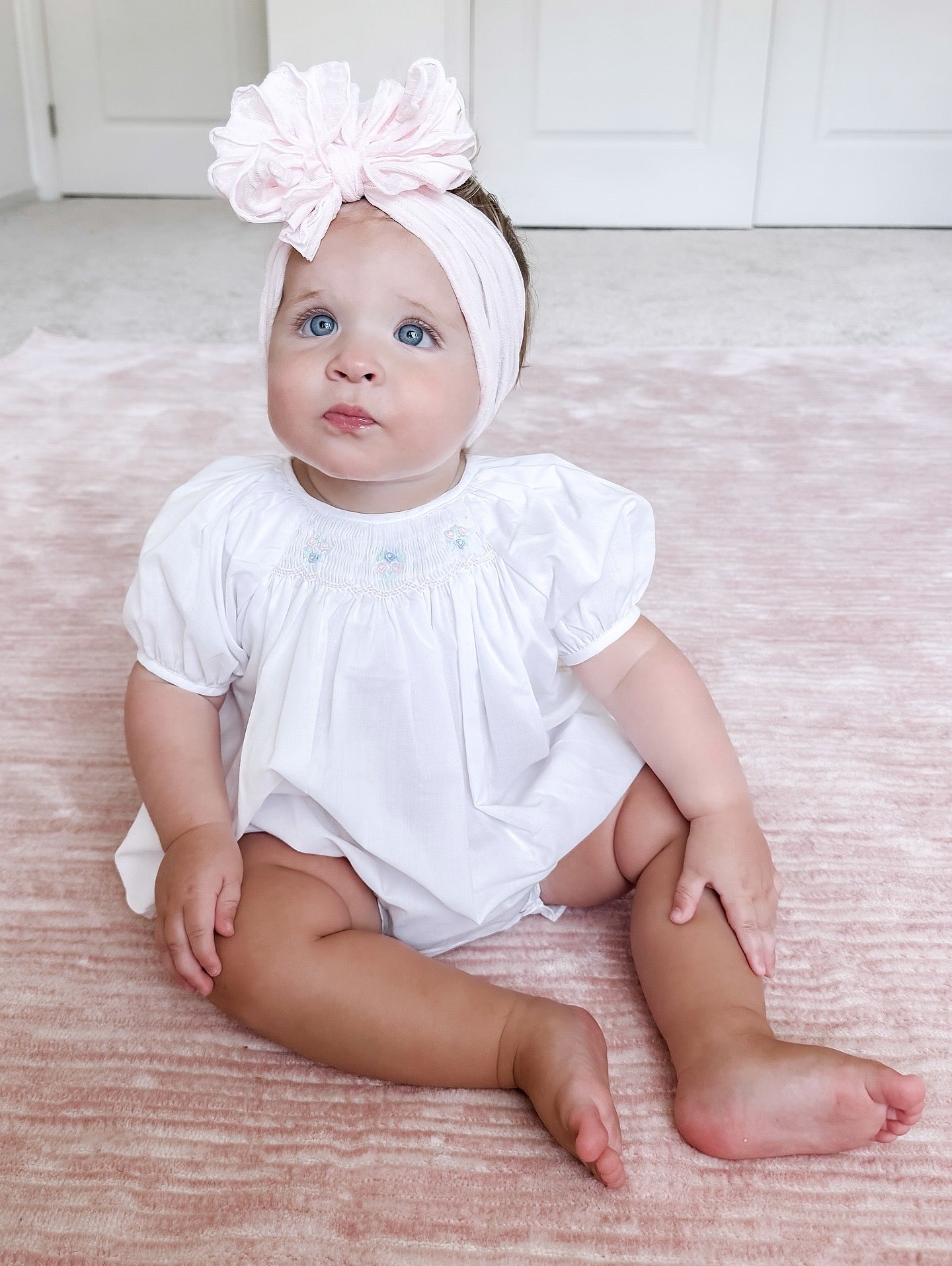 White Floral Smocked Bubble