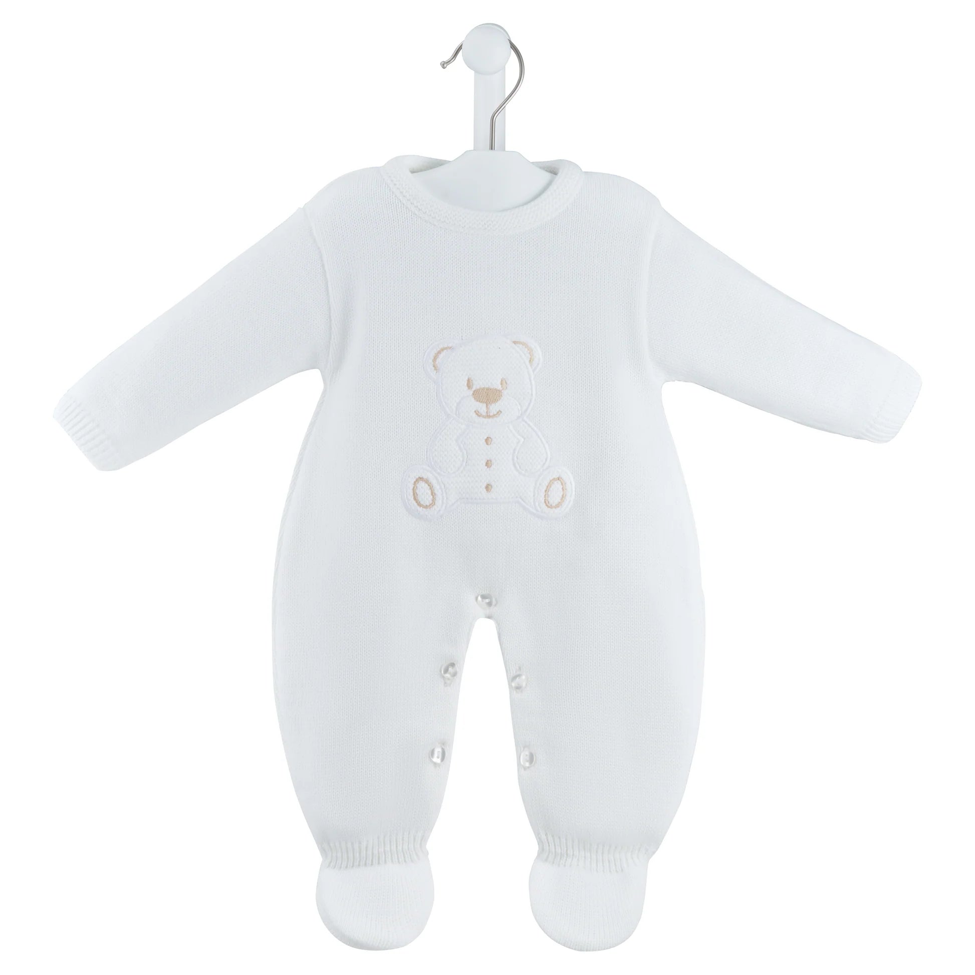Add a touch of whimsy to your little one’s wardrobe with this cozy, classic knit. Featuring a charming teddy bear applique down the front, this piece combines playful design with premium quality.